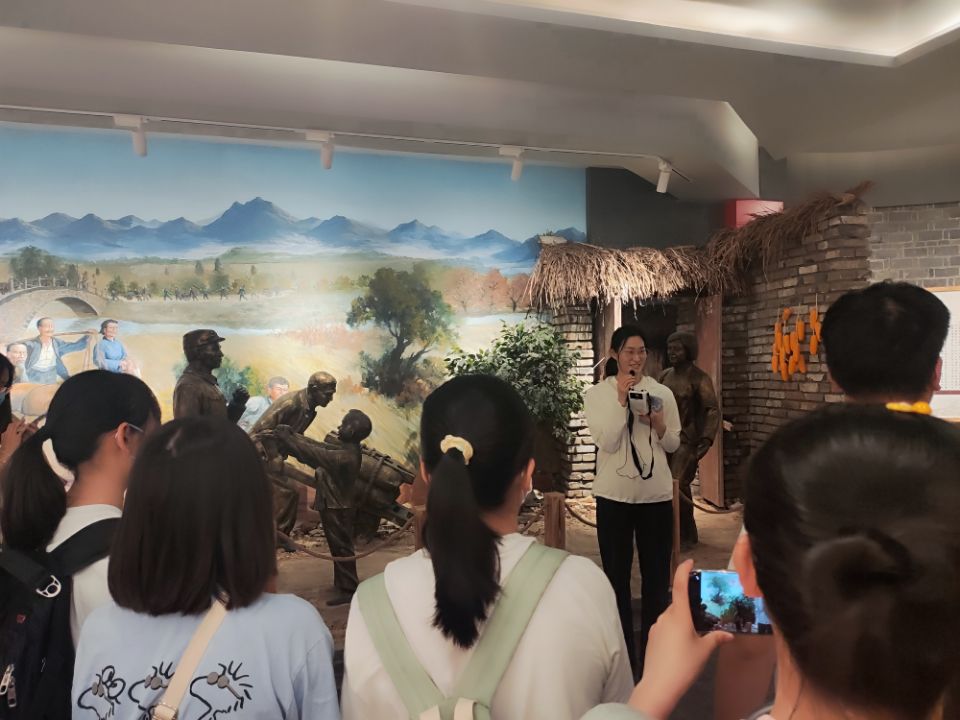 经过一个多小时的车程,师生一行来到了位于郧西县王家坪的鄂豫陕革命根据地纪念馆,在纪念馆门前,张怡君老师介绍了中国共产党在土地革命战争时期的整体情况,重点介绍了“农村包围城市、武装夺取政权”的新民主主义革命道路形成的过程。随后在讲解员介绍带领下,一起步入展厅。在一幅幅历史图片、一件件历史展物面前,讲解员详细地介绍其历史背景和背后的历史故事。思政课教师王刚、张怡君与现场讲解员互动交流,进行现场对话,现场讲解员侧重于讲鲜活的故事和具体的历史史。思政课教师讲背后的政治立场、理论逻辑、时代背景。形成了“讲解员生动讲解+思政课教师理论阐释”的教学形式。