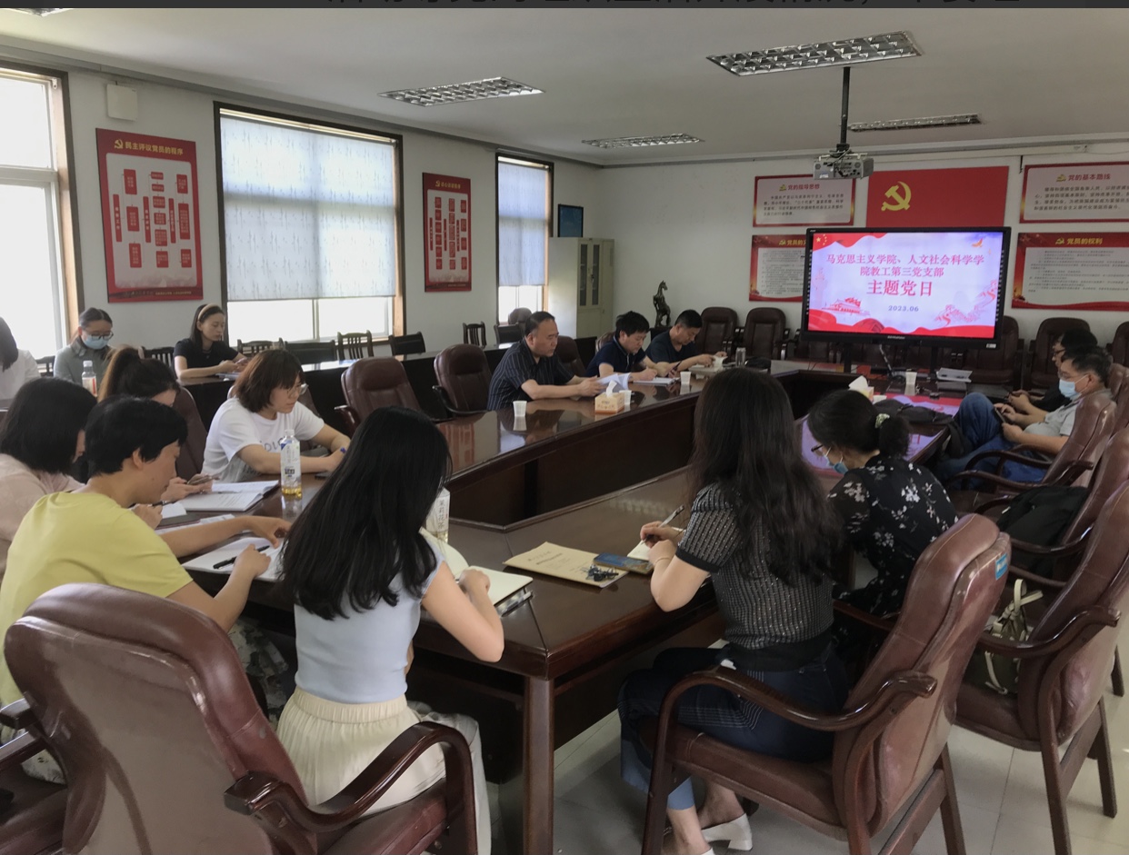 本网讯(通讯员 苏然)为深入开展学习贯彻习近平新时代中国特色社会主义思想主题教育,不断增强党组织的政治和思想引领力,推动学院立德树人取得新成效,6月8日上午,人文社会科学学院教工第三党支部开展主题党日活动。