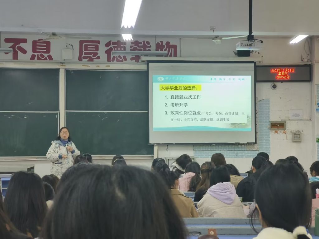 最后还跟同学们讲了国考、省考、事业单位考试、三支一扶、西部计划、士官直招等政策性就业岗位的情况。