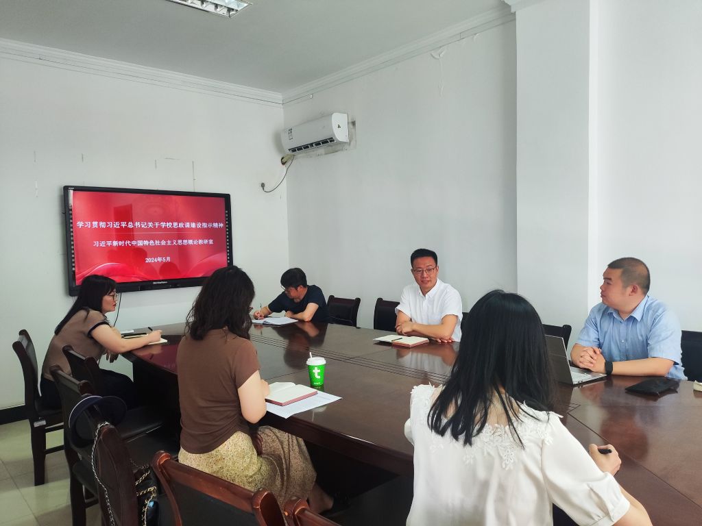 会上,全体教研室专兼职教师集体观看了相关专题新闻报道。湖北医药学院党委宣传部长陈建龙同志就相关内容进行了领学,并就学校推进落习近平总书记对学校思政课建设指示精神的具体举措进行了介绍。随后,教研室教师代表王刚、昝启均、姚小飞等老师围绕习近平新时代中国特色社会主义思想概论建设、课堂教学手段方法、课程内容安排等内容开展了深入交流。马克思主义基本原理教研室高志婕老师、马克思主义中国化教研室谢美娟老师也列席会议,并参与了相关讨论。(审稿 陈全新)