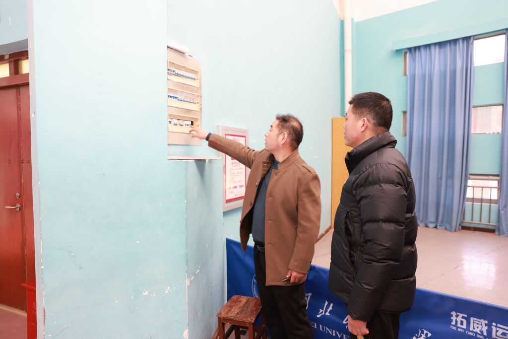 本网讯(图文 鲍晓宇)11月28日上午,人文社会科学学院副院长朱红军、体育课部主任王哲带队开展全校体育场馆消防安全大检查大排查。校保卫处、后勤处负责消防安全、水电保障的同志一同参加。