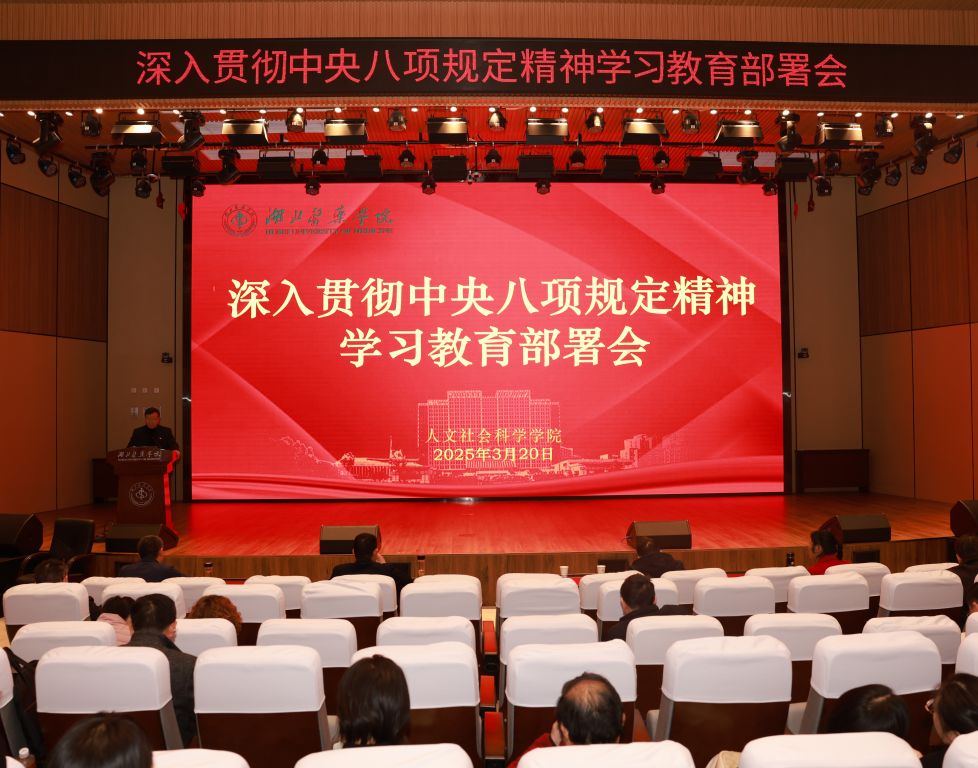 本网讯(图文 鲍晓宇)3月20日下午,湖北医药学院人文社会科学学院在公共卫生与健康大楼一楼报告厅召开深入贯彻中央八项规定精神学习教育部署会,学院全体党员参会。会议由人文社会科学学院党委书记孔祥清主持。
