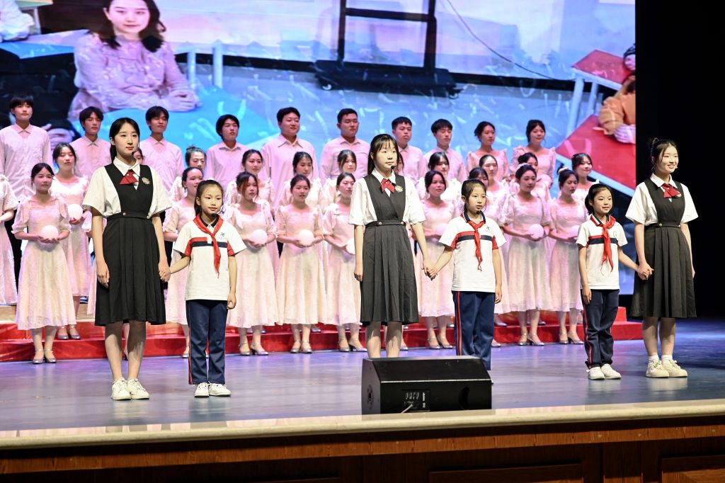 近日,“多彩中国”系列大思政课之红色中国篇——"传承红色基因·争做时代新人"主题晚会圆满落幕。由我院艺术教研室主任李霖教授指导的校合唱团,以两首红色经典歌曲《理想照耀中国》《没有共产党就没有新中国》,为师生呈现了一堂震撼心灵的思政课。